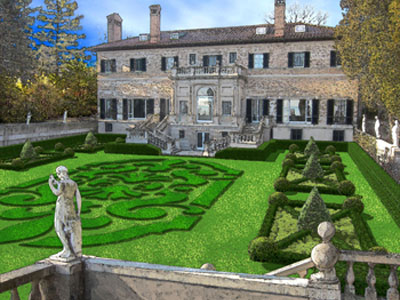 Conceptual plan (at left) illustrates a parterre à l'anglaise—a lawn with a finely clipped pattern cut
